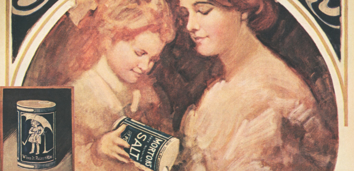 Three years after the introduction of free-flowing salt, Morton Salt unveiled its now-famous slogan, “When It Rains It Pours.” Accompanied by the iconic Morton Salt Girl, this concise and enduring reference not only showcased the product’s superior qualities but also cleverly played on a well-known proverb.