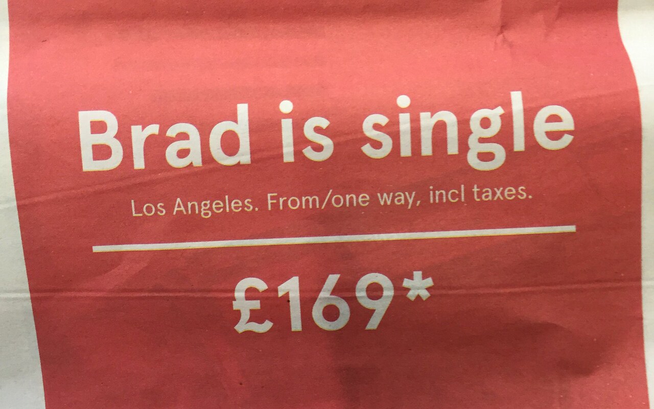 When the news broke about the end of Brangelina’s relationship, Norwegian Air wasted no time in leveraging the buzz. They swiftly launched a campaign offering low fares to Los Angeles with the attention-grabbing copy, “Brad is single.”