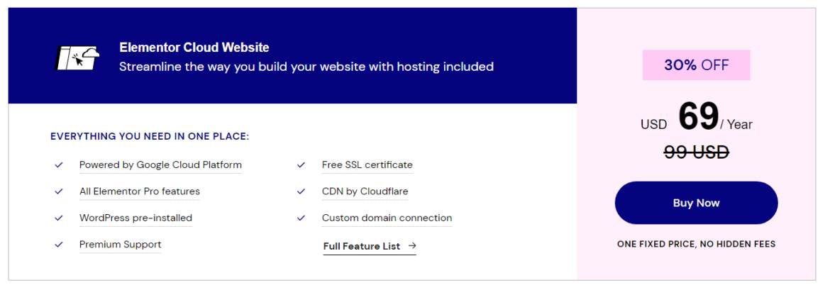 - Cost-effective. No need to buy any hosting package. You get it all in one place at an affordable price. When you subscribe to Elementor Cloud, you get Elementor Pro so you don’t pay for it separately.