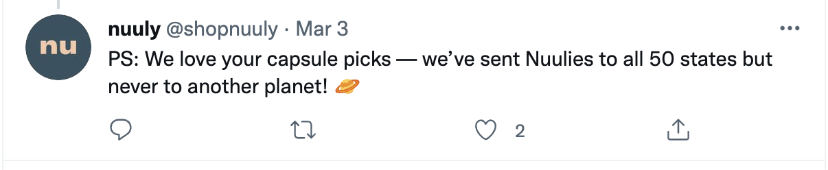 To stay current on the latest fashion trends and ensure they’re in alignment with their customers’ values, Nuuly uses social insights. Social monitoring also allows the brand to respond to and research its audience, which helps them improve its offerings and marketing strategy.