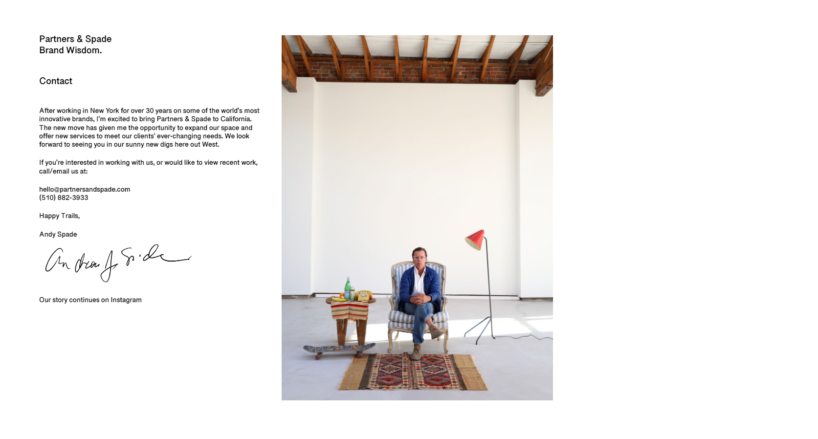 Partners & Spade is a branding studio based in New York City, and their website design is interactive while remaining simple. Their homepage immediately tells visitors what they do, and it’s easy to find their contact information, client list, work examples, and location.